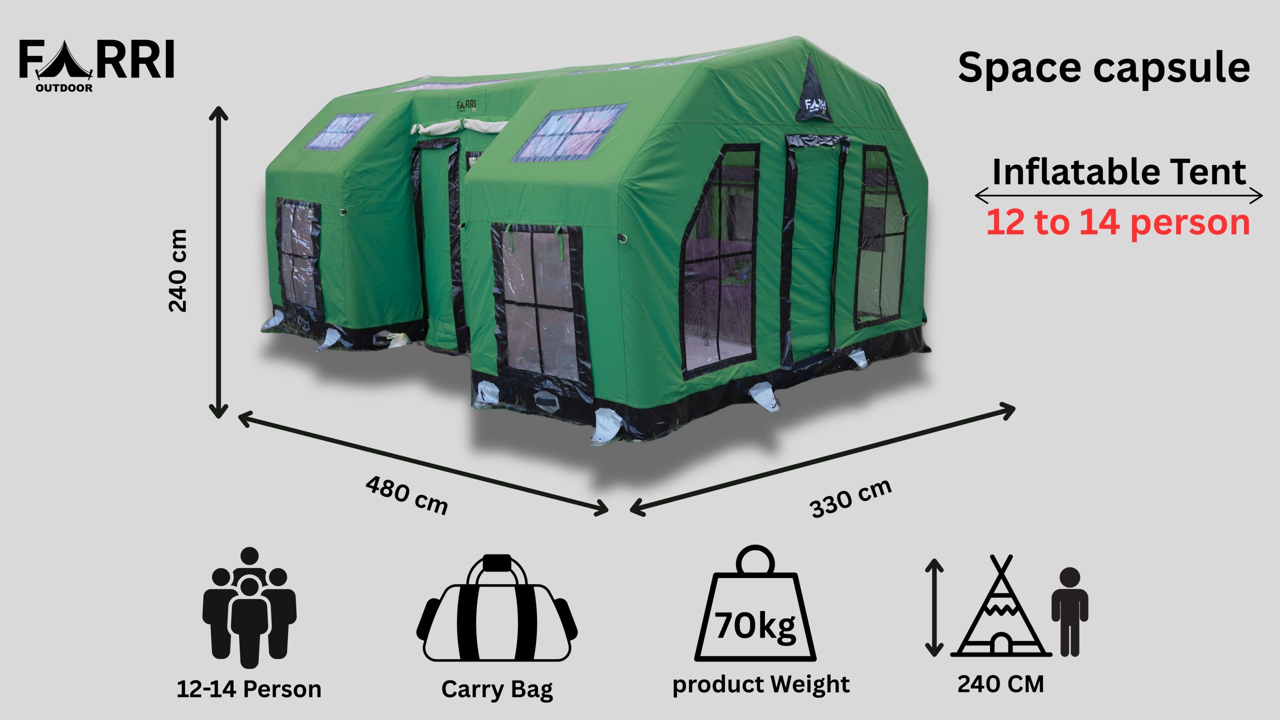 Farri Outdoor – Uzay Kapsülü Şişme Çadır (Yeşil) | 16 m² | 12-14 Kişilik | 4 Mevsim